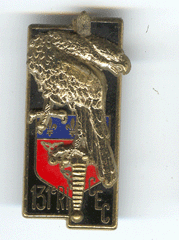 Centre d’Entraînement Commando N° 129 RI, (écu jaune et rouge), (DELSART-dos granuleux,plat)