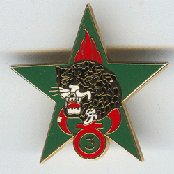 1° Bataillon du 3° REI,issi du RMLE,est créé au Maroc en 1920.Il est commandé par le chef du Bataillon Aage,figure légendaire de la Légion,le Prince Aage de Danemark.Variante dans bombe,vert au dessus. (AB-Paris).